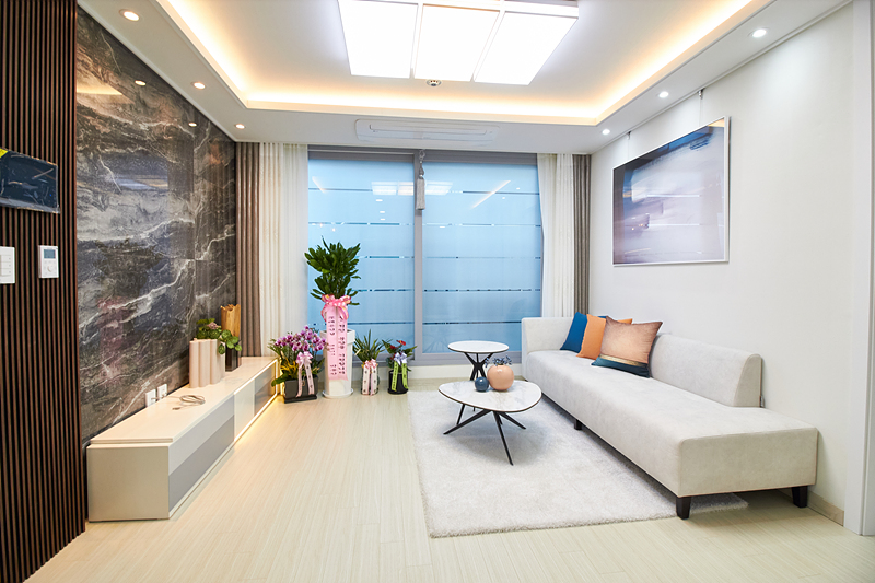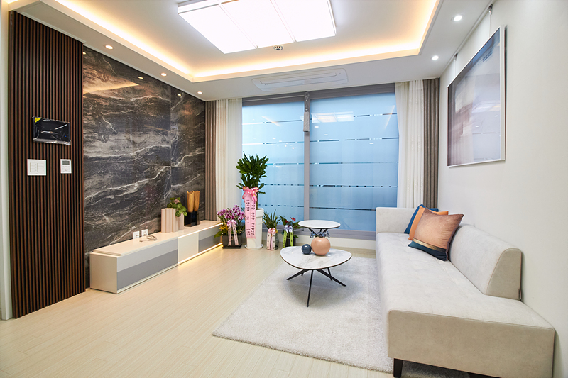 넓은 거실은 채광이 좋아서 낮에는 조명이 필요하지 않을정도로 밝습니다. 거실은 공간이 넓고 대형 쇼파나 테이블 등을 배치할 수 있습니다. 당수동신축빌라는 시스템 에어컨이 설치되어 있어 바닥 공간 활용도도 높습니다.