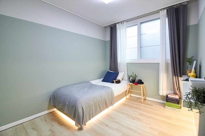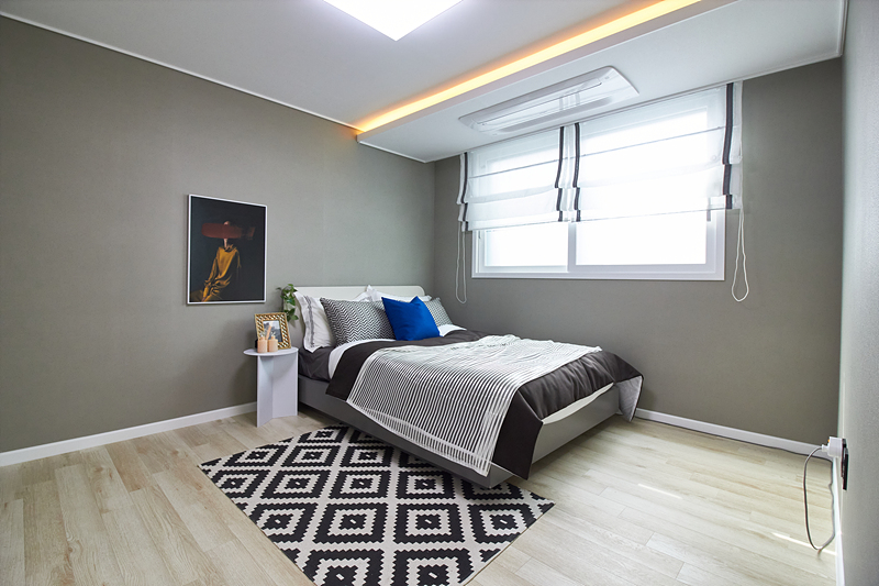 안방은 넓은 공간을 제공하여 각진 가구와 큰 침대를 설치할 수 있습니다. 더불어 두 개의 방은 적절한 구조로 설계되어 침대, 책상, 책꽂이 등을 배치하고 자녀의 공부방으로 활용할 수 있습니다.