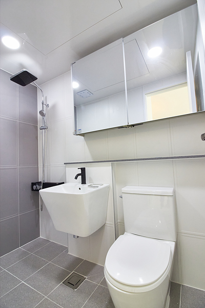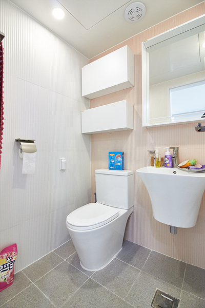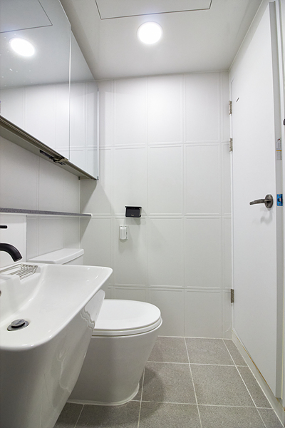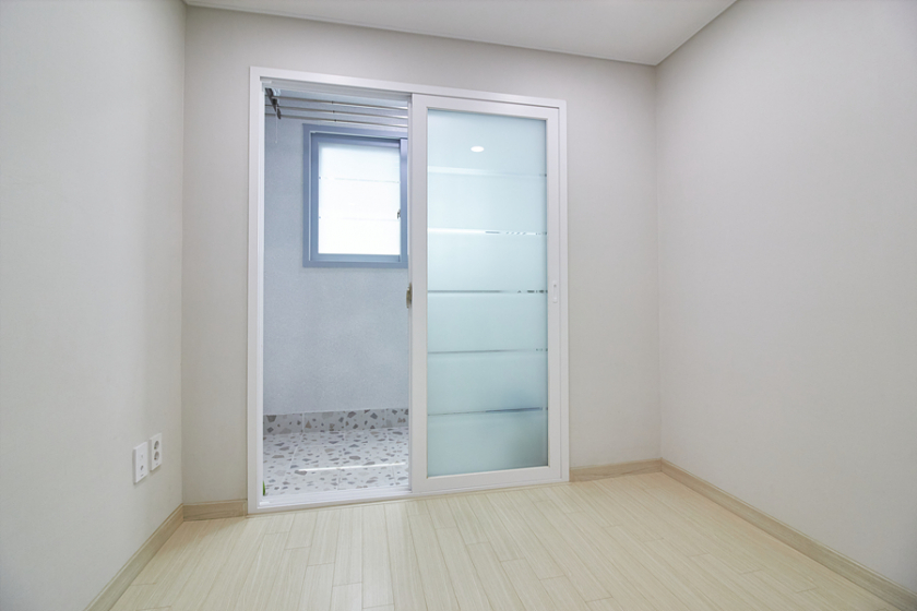 안방은 약 11자 사이즈로 부부가 사용하기에 좋습니다. 별도의 붙박이장과 시스템 에어컨도 시공되어 있어 편리합니다. 아이방으로 사용하기에도 좋은 크기입니다. 욕실은 두 곳에 설치되어 바쁜 아침시간에도 불편함이 없습니다. 베란다에는 세탁기와 건조기가 배치될 수 있습니다.