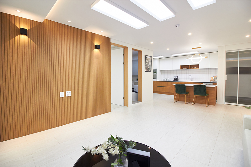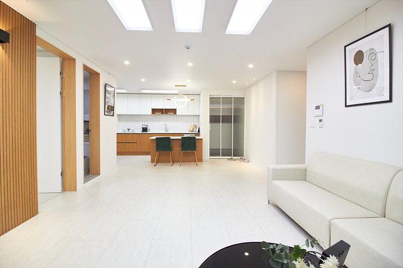 불연재 시공 (방화유리 포함) / 주차 100% / 국내산 LED 전등 / 3단 슬라이딩 중문 / 신발장 등