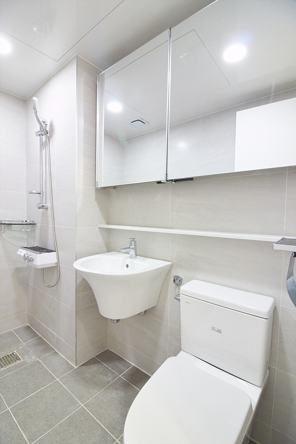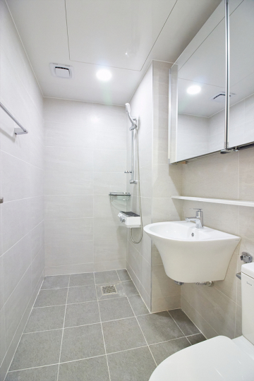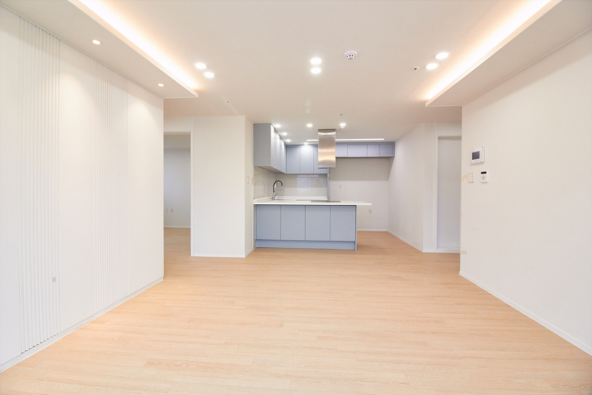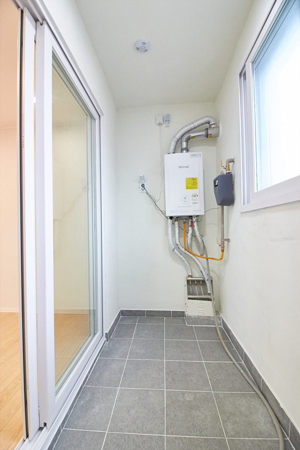 강마루, 현관 슬라이딩 중문, 신발장, 욕실 고압세척기, 코콤 컬러 인터폰, 린나이 가스보일러, 국산 LED 전등,