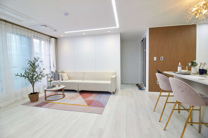 거실과 각 방에 천정형 무풍 에어컨 (총 4대), 공기청정기,
