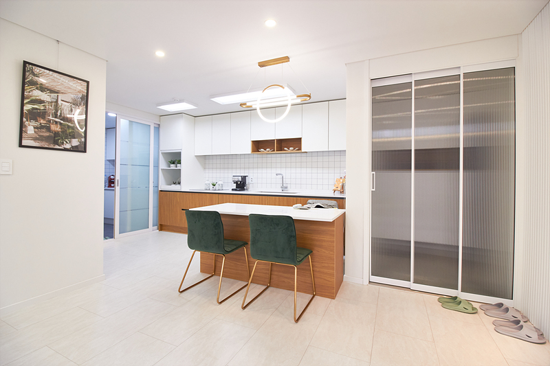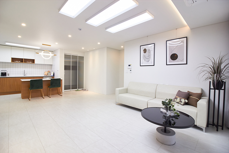 불연재 시공 (방화유리 포함) / 주차 100% / 국내산 LED 전등 / 3단 슬라이딩 중문 / 신발장 등