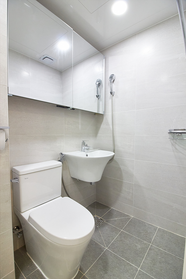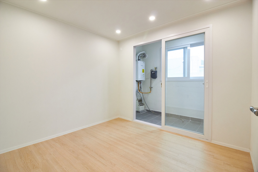 강마루, 현관 슬라이딩 중문, 신발장, 욕실 고압세척기, 코콤 컬러 인터폰, 린나이 가스보일러, 국산 LED 전등,